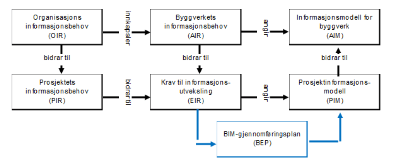I tillegg til Krav til informasjonsutveksling (EIR) er Prosjektinformasjonsmodellen et resultat av ledende leverandørs tilnærming til hvordan det skal leveres på kravene uttrykt i en BIM-gjennomføringsplan (BEP).